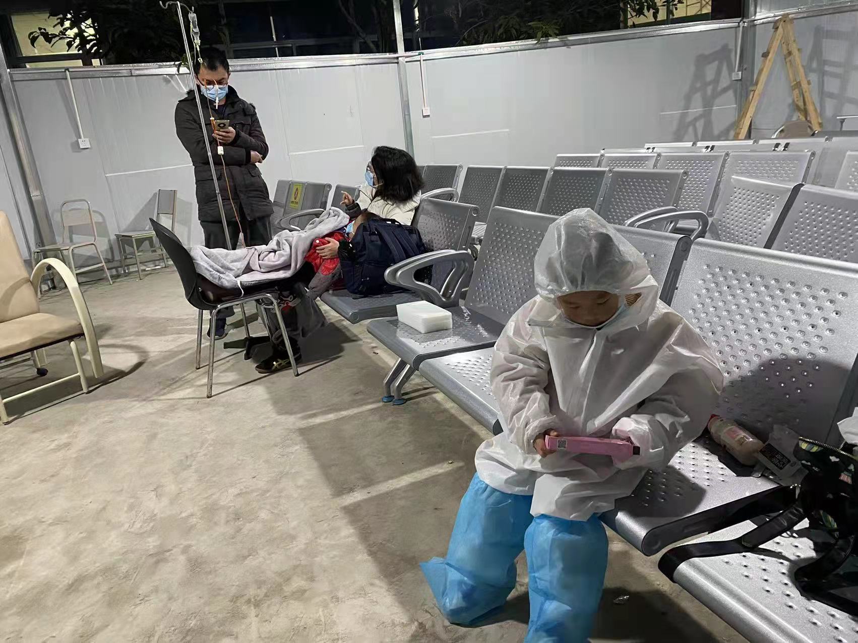很快,我们到达了成都市第一人民医院,在专门搭建的儿科发热门诊里就诊。同时在这里看病的,还有同小区的一个小姑娘,说是肺炎犯了,以及雅颂居的一个小男孩,也是断断续续发烧,两个孩子都是三四岁左右。