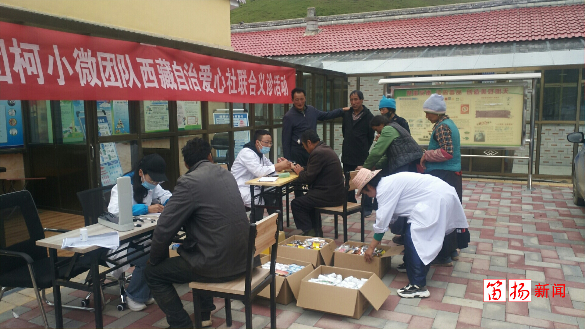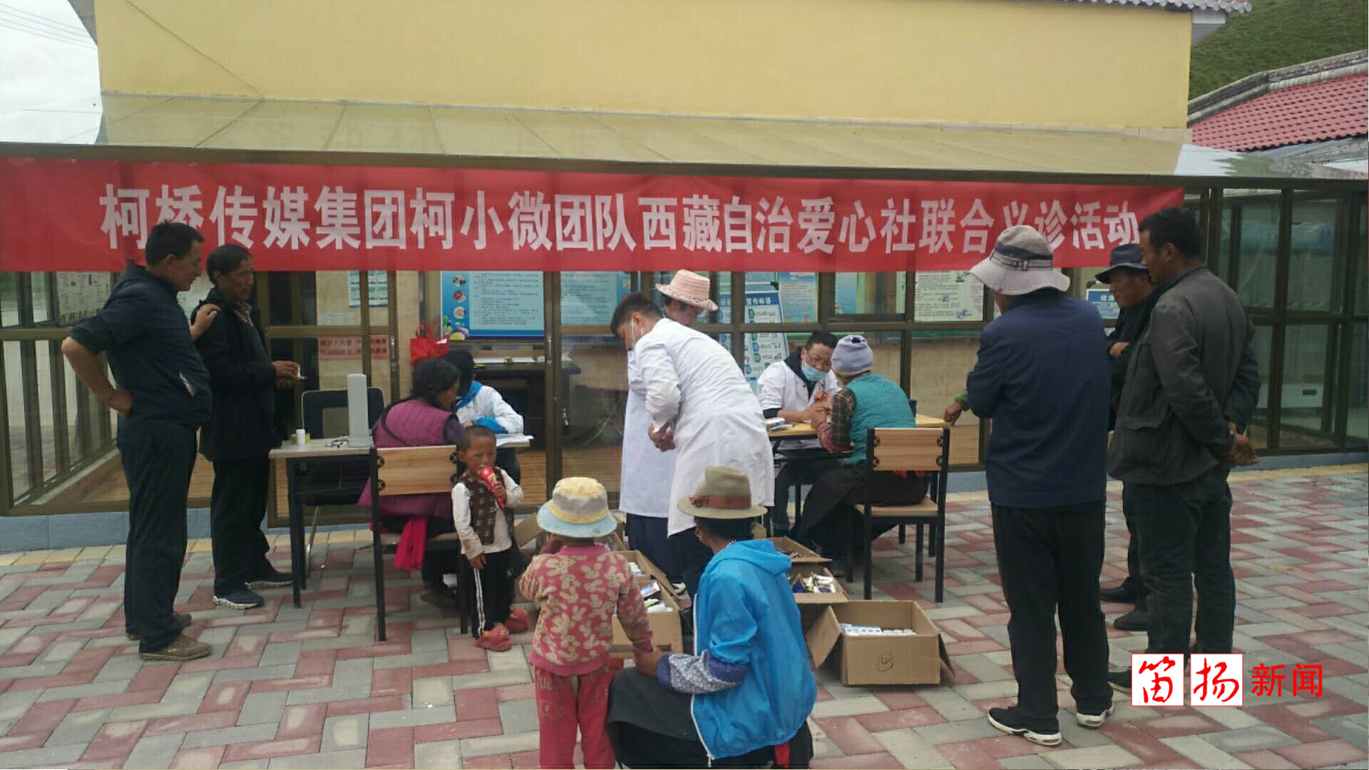 义诊活动从今天清晨5点开始。爱心社共出动了九位志愿者,其中六人为专业医生,他们带着80多种治疗常见疾病的藏药、中药和西药,走进山村,挂起“柯桥传媒集团柯小微团队、西藏自治区爱心社联合义诊活动”的横幅,为牧民们进行免费的诊断和开药。风湿、关节炎、败血症、肠胃病、感冒……只要是常见的疾病,都可以接受诊疗。村子里排起了长长的队伍,每一位获得免费看诊机会和药品的牧民都笑开了花。当他们得知这份爱心来源于数千公里万的柯桥时,不少牧民连声道谢:“感谢柯桥的同胞们,为我们带来了健康!”