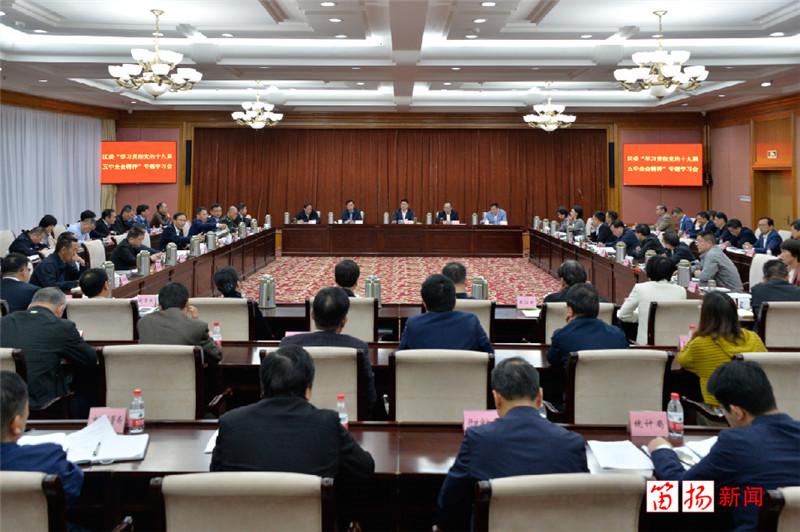沈志江强调,学习贯彻党的十九届五中全会精神,既要学深悟透,科学制定学习计划和宣传方案,确保在学习贯彻中不断取得新进步、新提高、新收获;又要带头示范,积极走进学校和基层联系点,将全会精神传达到每一个基层党组织、每一名党员干部,推动学习宣传贯彻活动不断走向深入。学习贯彻党的十九届五中全会精神,既要高瞻远瞩,立足新发展阶段、贯彻新发展理念,融入新发展格局,主动把柯桥发展放到“重要窗口”建设、融杭接沪联甬等大局、大势中去谋划考量;又要落地落细,始终保持战略定力,聚精会神办好自己的事,以更实举措更优服务更强保障,推动柯桥各项工作继续走前列、当标兵。学习贯彻党的十九届五中全会精神,既要完美收官,对标年初既定任务目标,逐项盘点、查漏补缺、全力冲刺,为“十三五”完美收官划上圆满句号;又要良好开局,高标准谋划出符合中央要求、体现时代特征、切合柯桥实际、回应群众期盼的“十四五”发展蓝图,并要结合“十四五”规划编制契机,抓紧谋划好明年思路,锚定“全市第一、全省领先、全国一流”目标,牢牢把握工作主动,全力确保实现“开门红”。学习贯彻党的十九届五中全会精神,既要创新求变,围绕产业链部署创新链,围绕创新链布局产业链,在危机中育新机、于变局中开新局;又要实干担当大力弘扬“靠作风吃饭、凭实绩说话”优良传统,敢于担当、善于担当,上下同欲、相向而行,以最大合力把每一项工作都抓紧抓实抓出成效,努力交出经济社会发展高分报表。