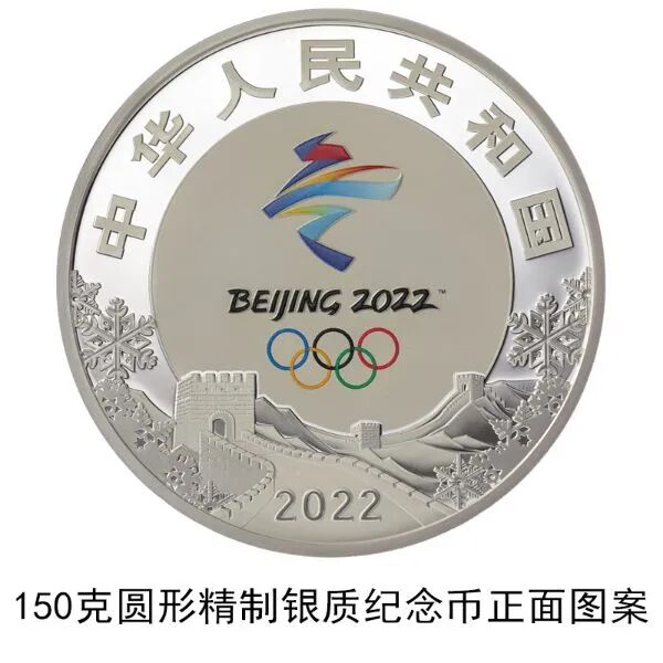 (四)150克圆形银质纪念币为精制币,含纯银150克,直径70毫米,面额50元,成色99.9%,最大发行量20000枚。