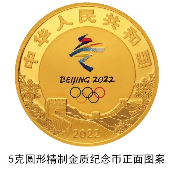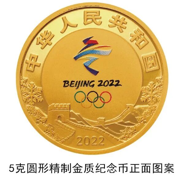 5克圆形金质纪念币背面图案为张家口蔚县剪纸风格滑雪造型,衬以柿子、窗棂等组合设计,并刊“第24届冬季奥林匹克运动会”字样及面额。