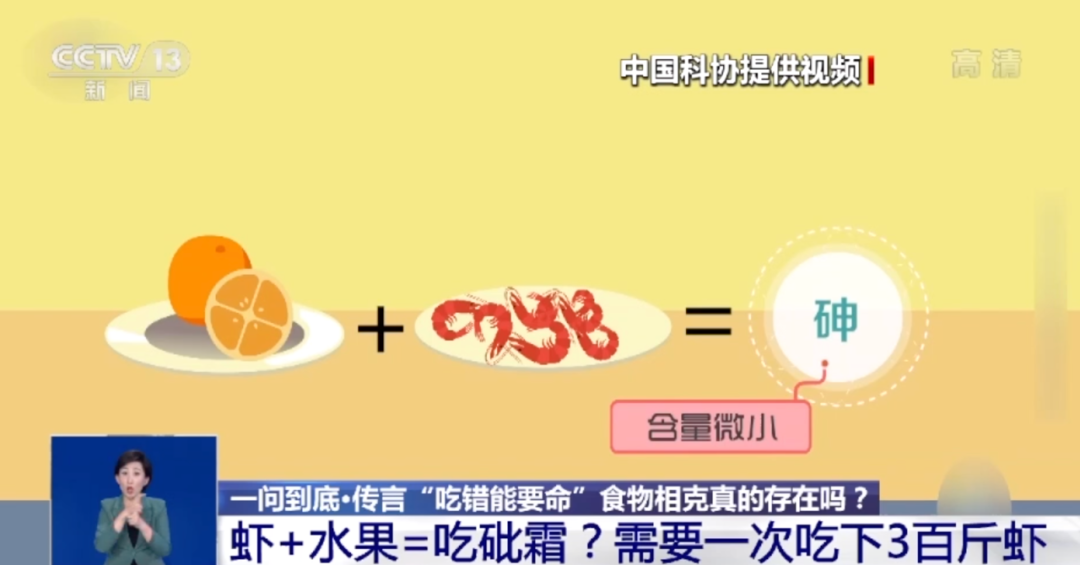 有关食物相克的传言,还有一条流传甚广,那就是虾蟹不能与富含维C的水果同食,会引发“砒霜中毒”,这有科学依据吗?