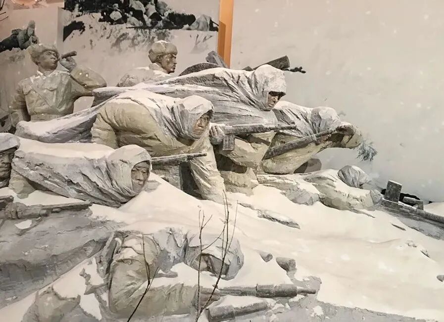 △“鏖战长津湖”场景,在零下三四十摄氏度的高山丛林中行军打仗,很多指战员被冻伤,还有很多战士被冻死在战壕里。(总台央视记者杨松涛拍摄)