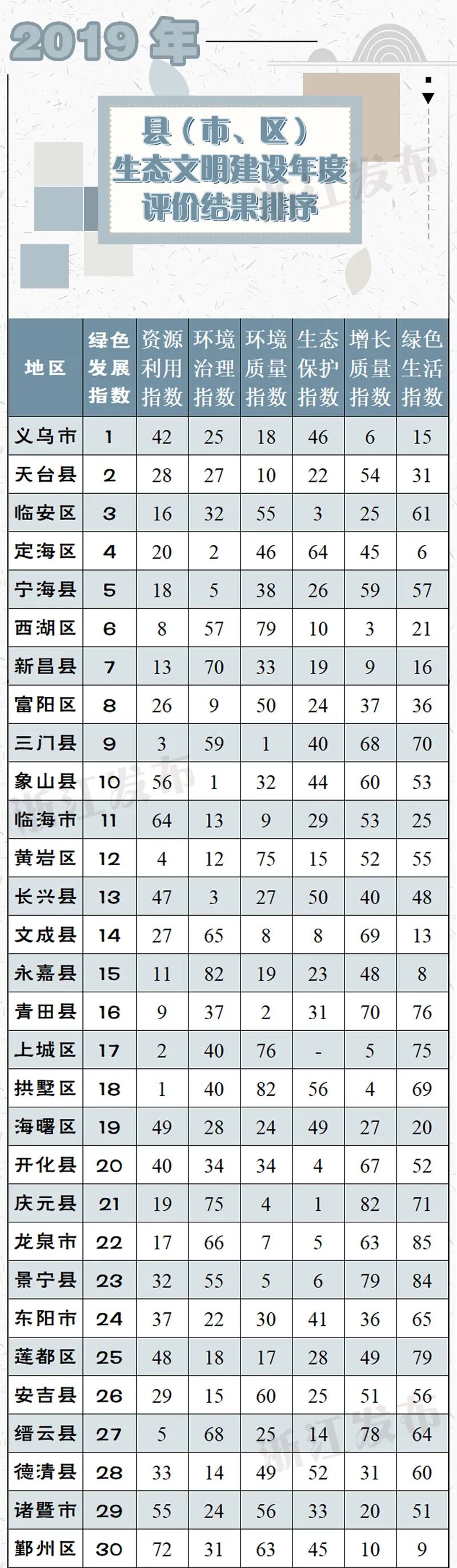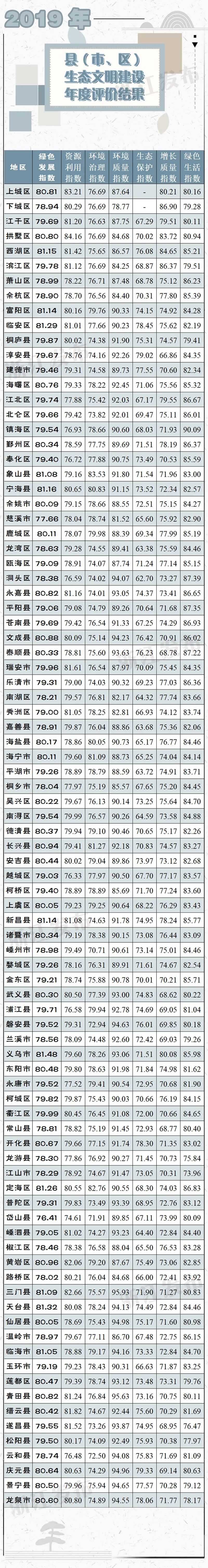 近日,浙江省统计局官网发布了《2019年我省生态文明建设年度评价结果公报》,包括《2019年设区市生态文明建设年度评价结果排序》《2019年设区市生态文明建设年度评价结果》《2019年县(市、区)生态文明建设年度评价结果排序》《2019年县(市、区)生态文明建设年度评价结果》4份表格等。你家乡排名如何?速看↓↓