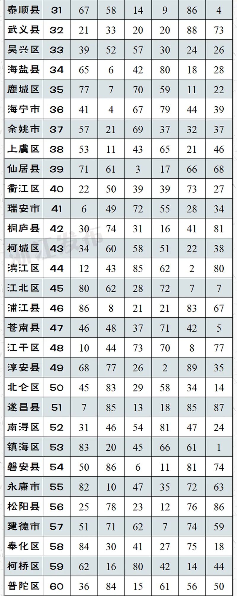 指数计算结果保留两位小数,当两地区保留两位小数后数值一致时,以实际指数值决定排序,即视小数点后几位数值大小决定排序。