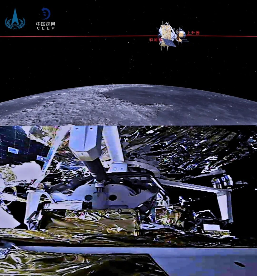 △嫦娥五号轨道器与上升器完成交会对接(图片来源:国家航天局)