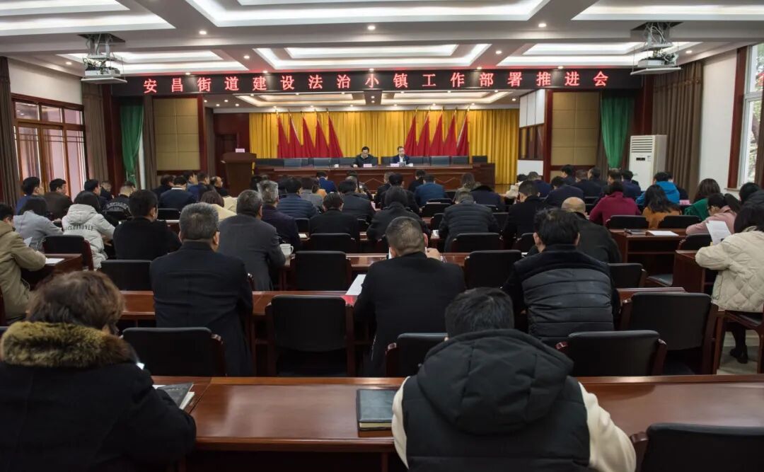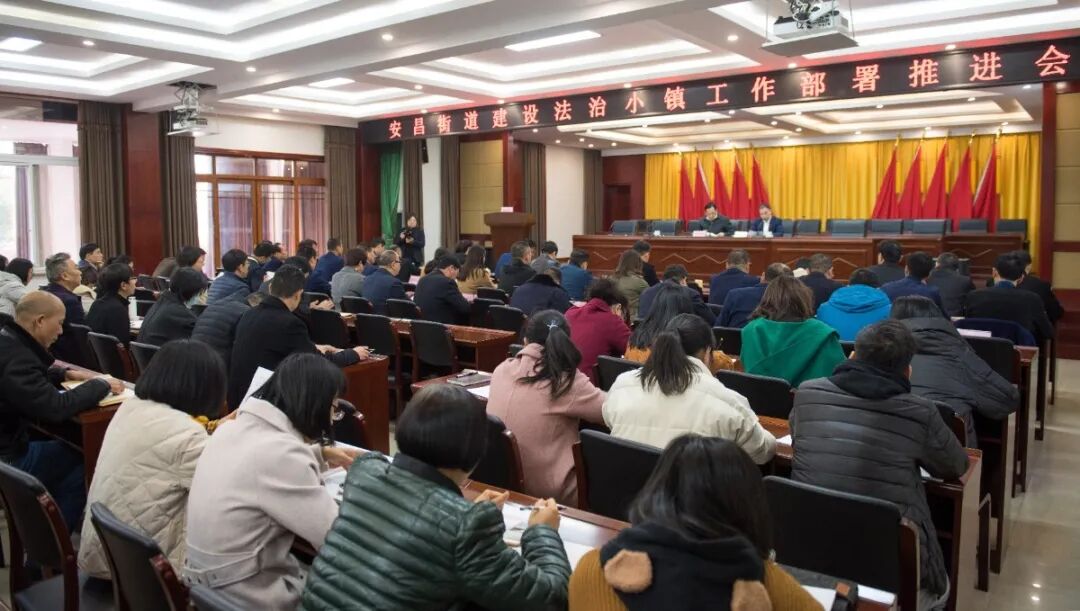 12月3日下午,安昌街道党工委召开建设法治小镇工作部署推进会,党工委书记钱钧对法治小镇建设工作全面实施进行部署,村(居、社区)及基层站所代表上台表态发言,为法治小镇建设工作明确了指导思想、时间节点、工作目标和工作任务。