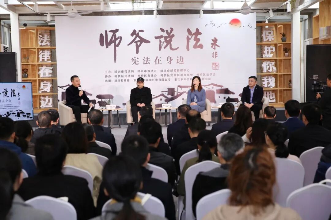 12月1日,《师爷说法》第四期——宪法在身边在安昌古镇天官第录制完成,本期《师爷说法》邀请了中共绍兴市委党校“枫桥经验”研究中心副教授尹华广、柯桥区司法局普法与依法治理科副科长潘晨斐、绍兴市律协越城分会秘书长汤雪明三位嘉宾做客现场,就“宪法”这一主题开展详细讲解。市人大法工委主任胡仲飞,市司法局局长黄文刚,区委常委、宣传部长李永杰,街道党工委书记钱钧等参加。