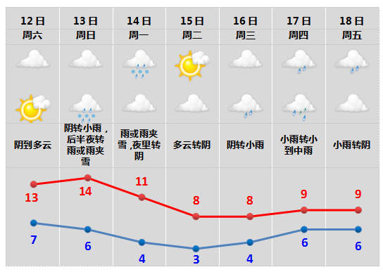 受冷空气南下影响,13日后期至14日柯桥区有降温、降水和大风过程,其中13日后半夜至14日平原地区有雨或雨夹雪,山区雨夹雪或雪,14日夜里雨雪止转阴天;16日后期至18日受暖湿气流和冷空气先后影响,还有一次降温、降水和风力增大过程;同时气温逐步下降。