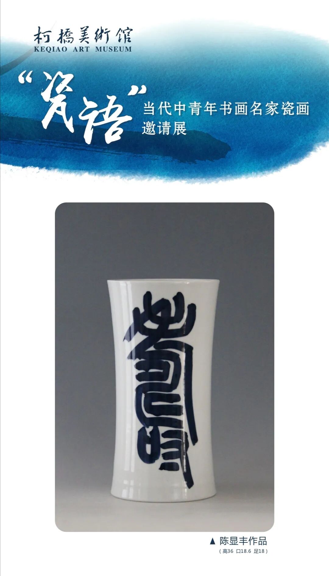 据悉,本次展览由绍兴市柯桥区文联、杭州市余杭区文联及杭州市余杭区陶艺协会共同主办,柯桥美术馆承办。共展出刘伽郡、鲁大东、黄文斌、沈洪波、陈显丰、宋开智、徐辞、沈宇翀、阳帆、杨银俊等10位当代中青年书画名家九十余件作品,包括青花瓷板、青花镶器、釉下五彩瓷板等。