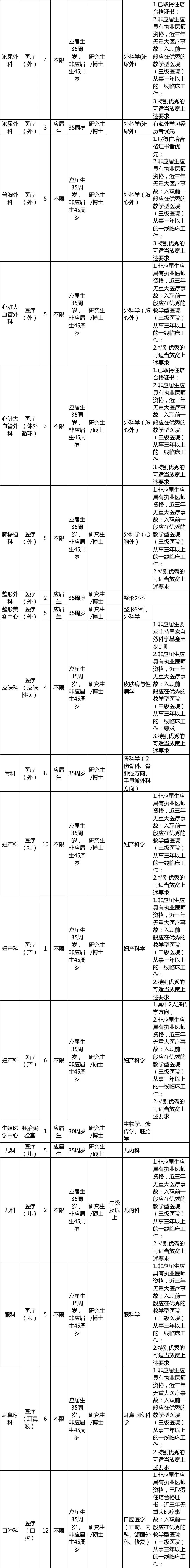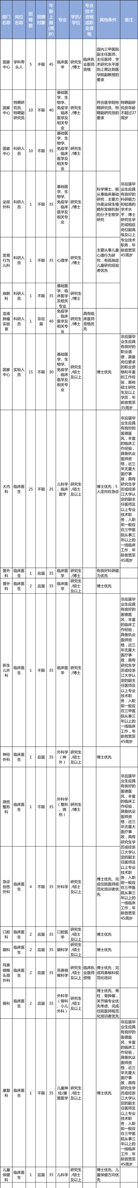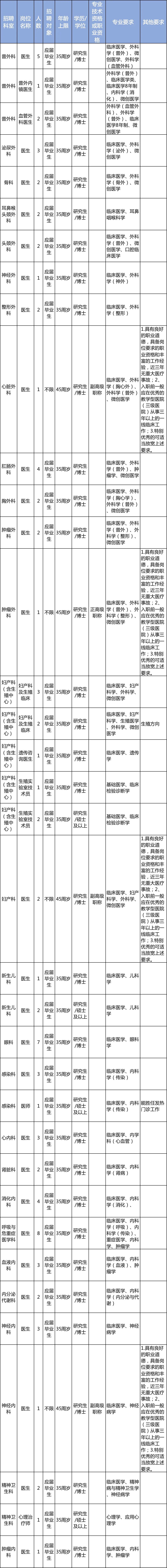 公开招聘98个岗位596人,其中:医疗岗438人,医技岗10人,药剂岗3人,科研岗52人,护理岗35人,非医疗技术岗4人,实验技术岗1人,管理岗3人。
