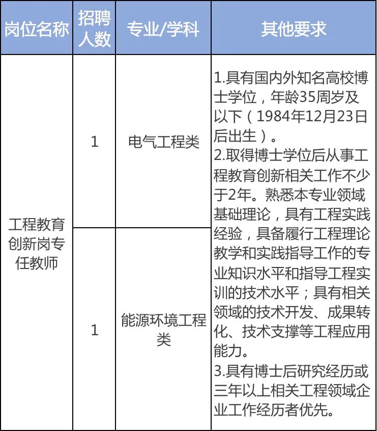 本次招聘需求为工程教育创新岗专任教师2人,为专业技术岗位。