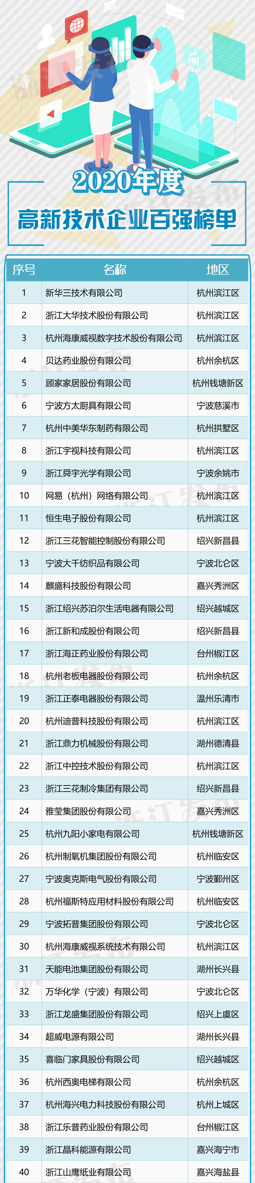 近日,受浙江省高新技术企业协会委托,浙江省科技信息研究院组织开展高新技术企业创新能力评价工作。通过多指标的综合对比,评选出2020年浙江省高新技术企业创新能力百强。快来瞧瞧哪些公司上榜~