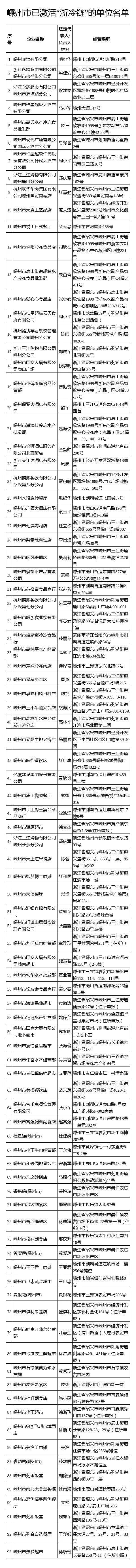 五、截至2020年12月18日,已进行“浙冷链”主体激活(视同已备案登记)的单位名单见附件。