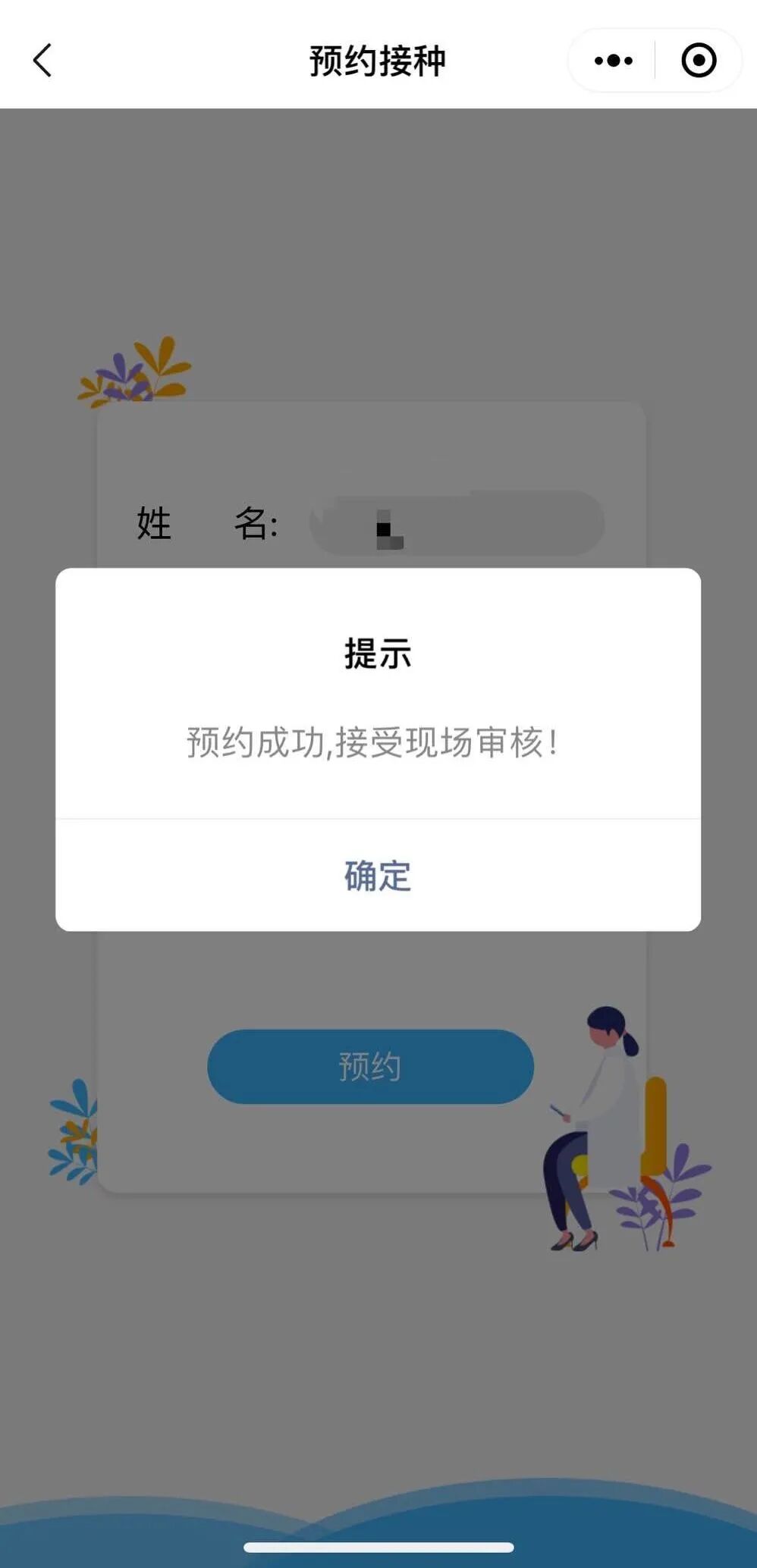 4.如果您收到以下提示,那么恭喜您预约成功啦!