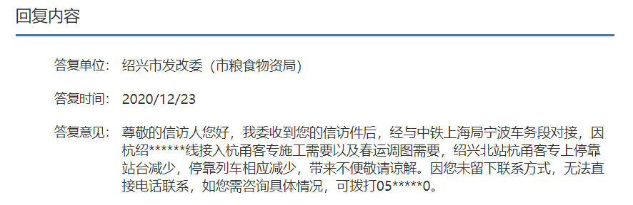 记者了解到,近日,有网友在浙江省人民政府网上咨询绍兴北站车次越来越少的情况。