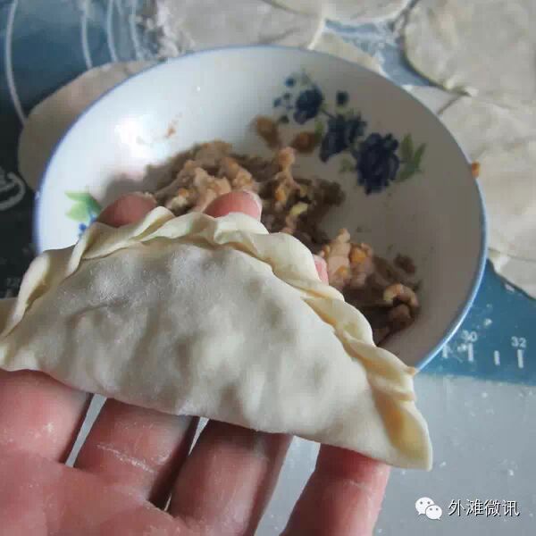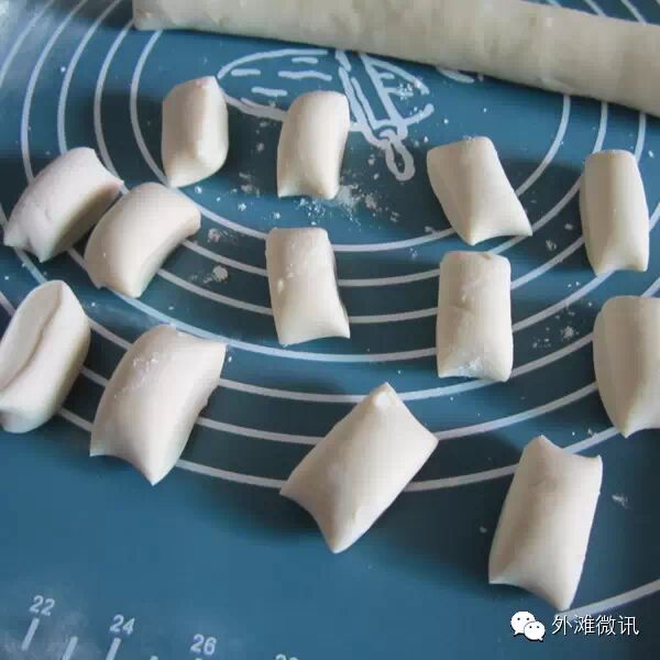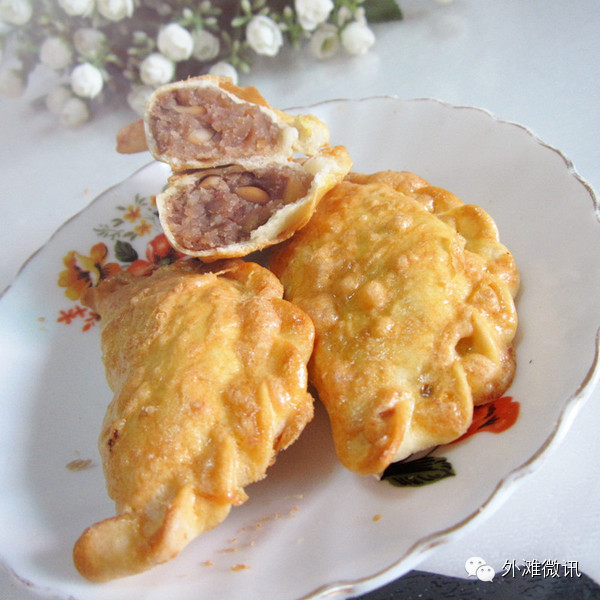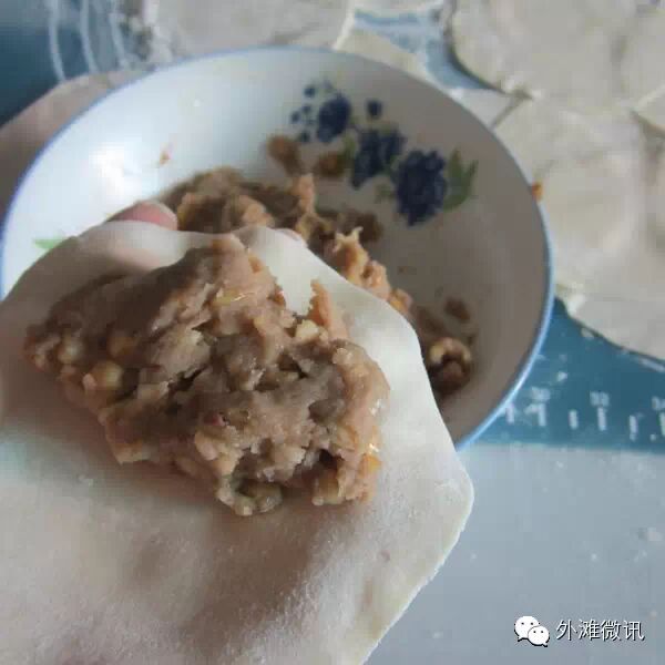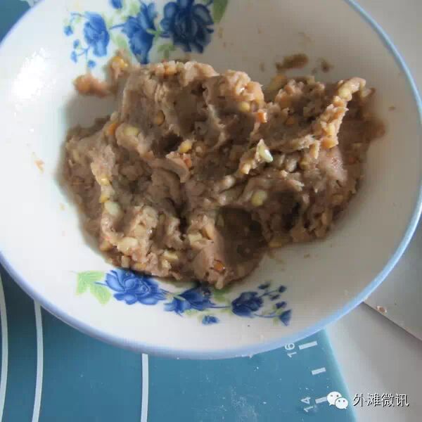 ▲ 备好的红豆沙里放点白糖和花生仁拌匀