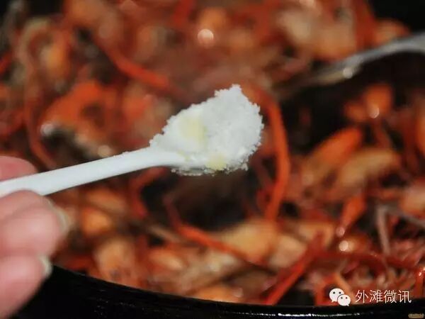 4.炒至虾壳红时,加入适量细盐、生抽、黄酒。