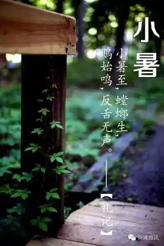 小暑(Lesser Heat),是二十四节气之第十一个节气,也是干支历午月的结束以及未月的起始;公历每年7月7日或8日时太阳到达黄经105°时为小暑。暑,表示炎热的意思,小暑为小热,还不十分热。意指天气开始炎热,但还没到最热,全国大部分地区基本符合。全国的农作物都进入了茁壮成长阶段,需加强田间管理。