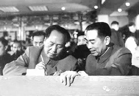 1954年9月15日至28日,第一届全国人大第一次会议在北京中南海怀仁堂隆重举行。出席代表1226人。会议由中央人民政府主席毛泽东主持并致开幕词。听取和通过了刘少奇的《关于中华人民共和国宪法草案的报告》,周恩来的《政府工作报告》,通过了《中华人民共和国宪法》,《中华人民共和国全国人民代表大会组织法》,《中华人民共和国人民检察院组织法》和《中华人民共和国地方各级人民代表大会和地方各级人民委员会组织法》。大会一致选举毛泽东为中华人民共和国主席,朱德为副主席,刘少奇为第一届全国人民代表大会常务委员会委员长,宋庆龄等13人为副委员长,董必武为最高人民法院院长,张鼎丞为最高人民检察院检察长。大会根据毛泽东主席的提名,任命周恩来为国务院总理,井根据周恩来总理的提各,任命陈云等10人为国务院副总理。图为毛泽东在写选票