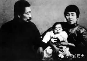 鲁迅看着儿子海婴,五十得子的他满脸幸福。