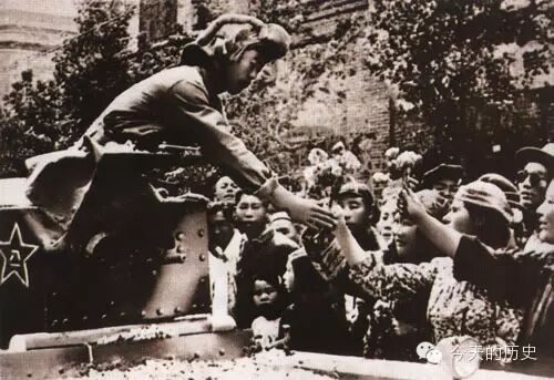 面对解放军摧枯拉朽的现实,国民党新疆省警备总司令陶峙岳于9月25日发出通电,宣布率全省军政人员起义,新疆获和平解放。宣布脱离国民党反动政府,归向人民。图为1949年中国人民解放军进入新疆,受到当地各界群众的欢迎。