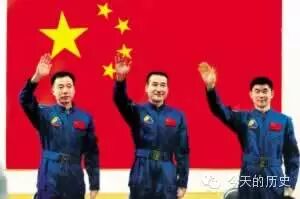 神舟七号载人航天飞船于2008年9月25日21点10分04秒988毫秒从中国酒泉卫星发射中心载人航天发射场用长征二号F火箭发射升空。飞船于2008年9月28日17点37分成功着陆于中国内蒙古四子王旗主着陆场。神舟七号载人飞船(Shenzhou-Ⅶ manned spaceship)是中国神舟号飞船系列之一,用长征二号F火箭发射升空,是中国第三个载人航天飞船。图为神七飞行的航天员翟志刚(中)、刘伯明(右)、景海鹏