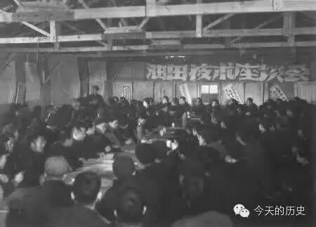 1959年9月25日,中国石油勘探队在东北松辽盆地陆相沉积中找到了工业性油流。时值国庆10周年,所以这个油田以“大庆” 命名。大庆油田的发现,打破了中国是“贫油国”的论调。解放前,中国只有甘肃老君庙、新疆独山子、陕西延长3个小油田和四川圣灯山、石油沟2个气田,年产原油仅10余万吨,石油基本上靠从外国进口。大庆油田的开发,使原油产量大幅度增长。到 1963年12月,周恩来终于可以自豪地宣布:中国需要的石油,现在已经可以基本自给了,中国人民使用“洋油”的时代,即将一去不复返了。图为1960年,国家组织开发大庆油田会战。图为会战指挥部在采油驻地召开油田技术座谈会