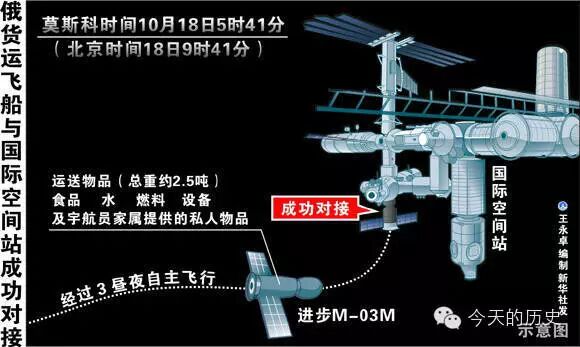 2009年10月18日 (农历九月初一),俄“进步M-03M”货运飞船与国际空间站成功对接。
