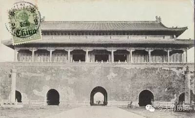 公元1417年(明永乐十五年),明成祖朱棣准备迁都北京,派蒯祥等著名匠师分工负责皇宫建筑群的设计和施工。蒯祥就精心设计了皇城正门,1420年竣工,当时叫“承天门”,为黄瓦飞檐3层楼式的5座木牌坊,是沿用唐代皇城正门的旧称,表示皇帝“承天启运”,“受命于天”。明英宗天顺元年(1457)承天门被火烧毁,宪宗成化元年(1465)由工部尚书白圭主持重新修建。这回不再是牌坊,而是9开间门楼了,到了明末又毁于兵火。清顺治八年,即1651年,世祖福临重新修建这座城楼,改建以后,10月31日,将承天门改称天安门,大体成了今天这个样式。明、清两朝,这儿是禁地,它只是帝王皇宫的大门,红墙围绕,庭院阴森。当时天安门面对着大明门(清代改称大清门,后又改称为中华门,解放后拆了),中间是御道,两旁是千步廊。从建承天门起,到1911年清王朝覆灭为止,除了皇亲贵族来往出入,老百姓不准过往。大明门除隆重的典礼外,常年不开。封建帝王出入天安门有特定的日子,冬至到天坛祭天,夏至到北郊祀地,孟春祈谷,仲春耕田。皇帝出征,要在天安门前祭路。图为民国初年的天安门