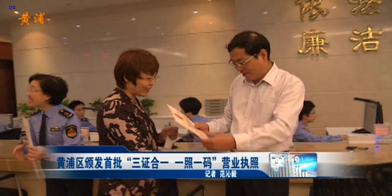 10月09日 10:05 黄浦区颁发首批“三证合一、一照一码”营业执照