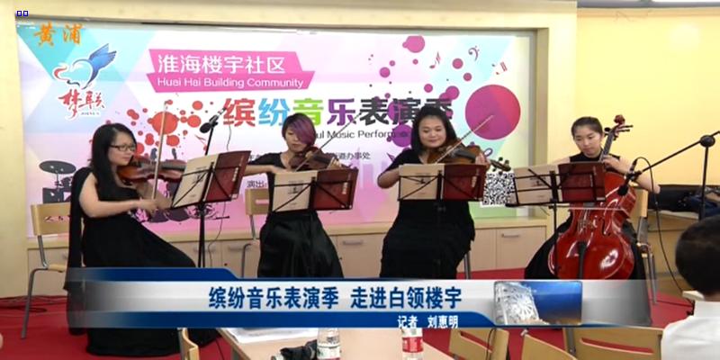 “淮海楼宇社区缤纷音乐表演季”日前走进了金钟广场,主办方淮海中路街道为午休的白领们送上了一台精致优雅的小型音乐会。