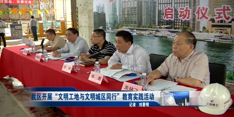 黄浦区建设工程“安全生产月”动员大会暨“文明工地与文明城区同行”教育实践活动启动仪式在596地块工地举行。