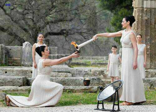 2008年3月24日,北京奥运会圣火采集仪式在希腊古奥林匹亚遗址举行。
