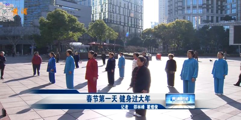 羊年第一天,许多市民坚持早晨出门锻炼身体,一些健身团队的队员们聚在一起,互相拜年,祝愿羊年里身体健康,远离疾病。