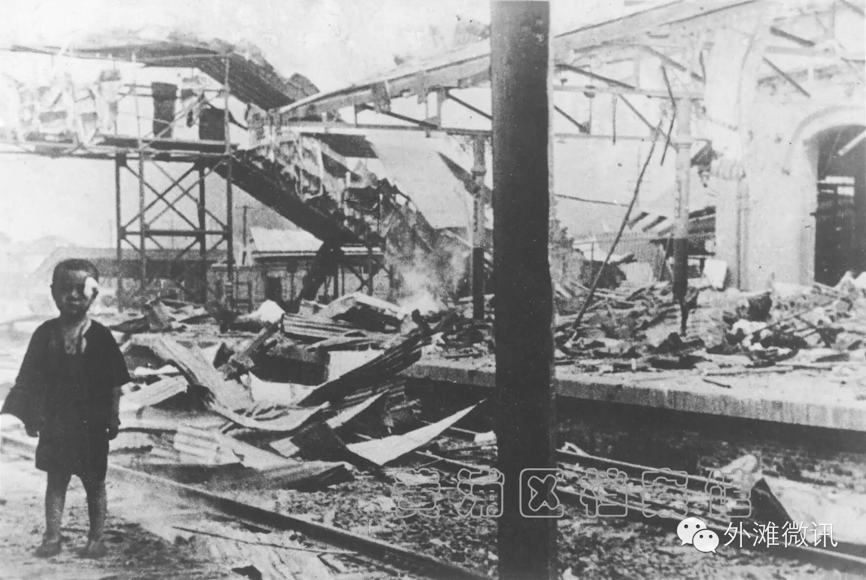 1937年8月28日日军轰炸上海南站,幼儿在月台边嚎啕大哭。这张照片震撼了全世界。