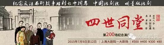 1、明星版话剧《四世同堂》200场纪念演出 2、大型上海抗战话剧《阿拉是中国人》 3、腾格里的骏马——音和思琴乐团音乐会 4、盗墓笔记 III