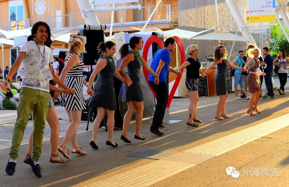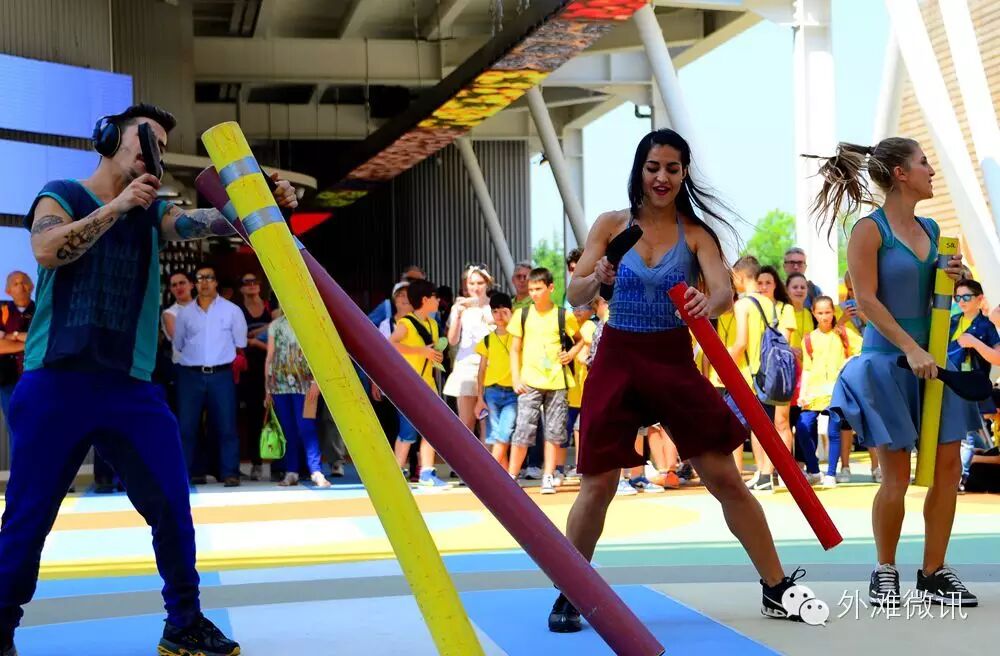 而为了附和这一Payty的需求,除了极个别还缓不过神来的展馆之外,大多展馆都开设了演出舞台,蹦蹦跳跳,肆无忌惮。更有甚者,连世博轴的过道也被借用了过来,工作人员带头,大跳广场舞。米兰世博,没有警察,不见城管……