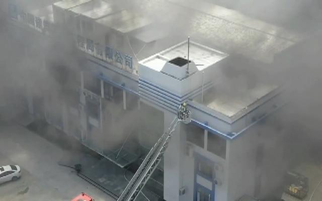 HD_20220405企业起火 消防员架梯救三人